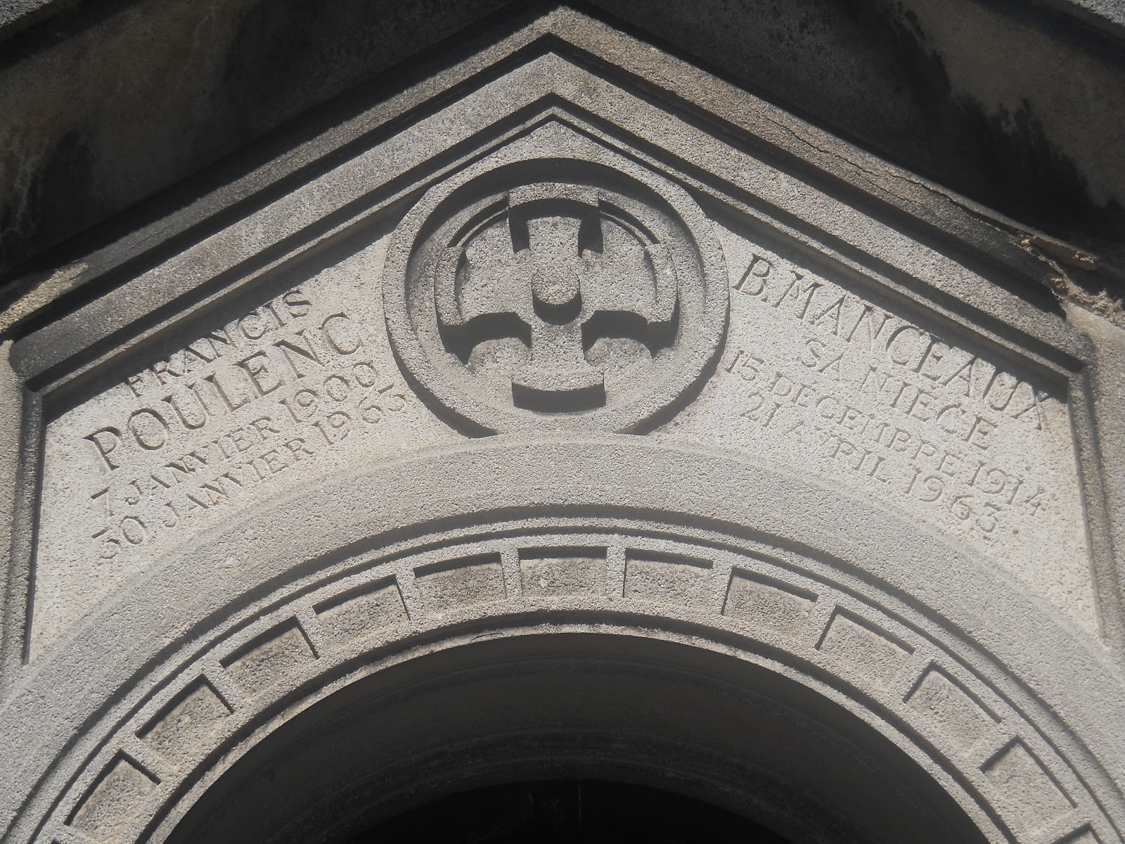 Then, there is the renowned “half-monk, half-thug”, Francis Poulenc. When I visited his grave, I did not know much about him. But since that time, I have become more familiar with his works. What I really appreciate about Poulenc is the number of different ensembles he wrote for successfully. This includes such interesting works as a sonata for 3 brass instruments, or even a work for an instrument from every section of the orchestra in an interesting chamber ensemble. He had a very beautiful grave, as one can see.